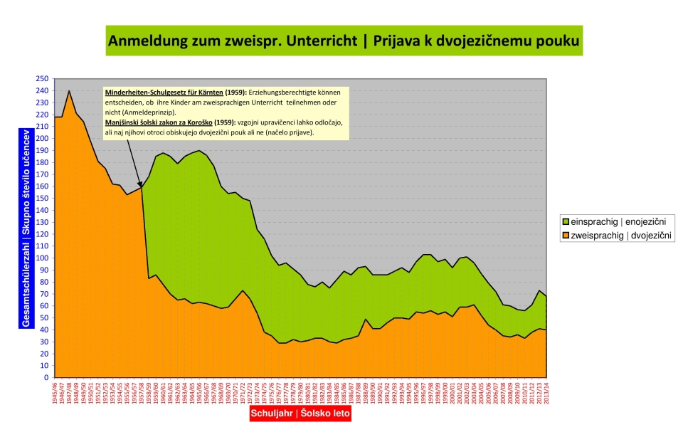 Prijava k dvojezičnemu pouku od 1945 do danes