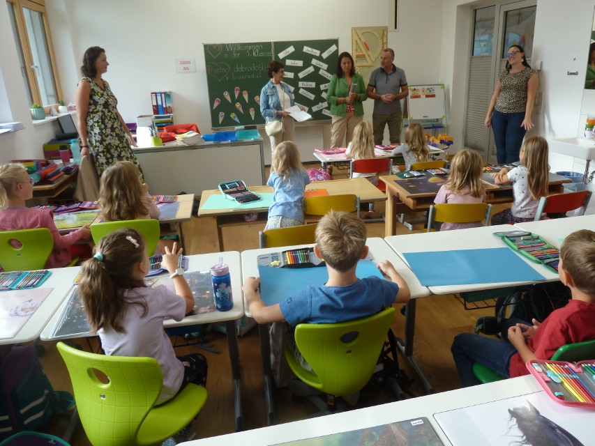 Seit 8. September drücken insgesamt 71 Schülerinnen und Schüler die Schulbank der VS Ludmannsdorf. Für 8 Buben und 10 Mädchen in unserer 1. Klasse war es überhaupt der erste Schultag. Mit großen Schultüten und in Begleitung der Eltern und Großeltern wurden sie von den Klassenlehrerinnen begrüßt und in der Schule willkommen geheißen. Auf Initiative des Ausschusses für Familie, Jugend, Senioren, Gesundheit und Soziales übernimmt die Gemeinde Ludmannsdorf sämtliche Kosten für die Schulhefte, Zeichenblöcke und Mappen der Kinder in der 1. Klasse – ein herzliches Dankeschön!