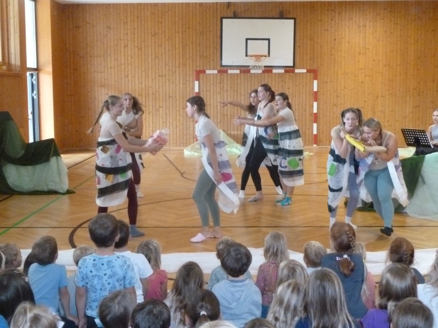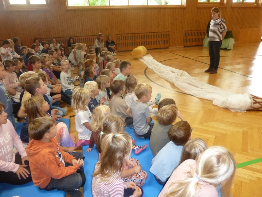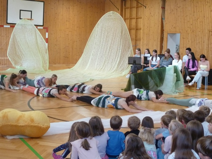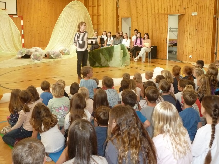 Am Donnerstag, den 25. September besuchten uns Studenten und Studentinnen der Mittelschule für Erzieherinnen und Erzieher aus Ljubljana. Sie spielten für die Kinder des Kindergartens und der Volksschule ein Theaterstück in slowenischer Sprache („Die kleine Raupe Nimmersatt“), welches sie im Zuge ihrer Ausbildung selbst geschrieben und inszeniert haben. Für die Kinder ein großer Spaß und eine sprachliche Bereicherung. Danke dem Kindergartenteam für die Organisation dieser Veranstaltung!