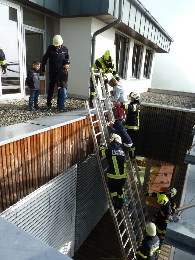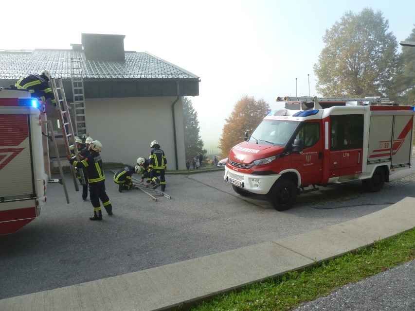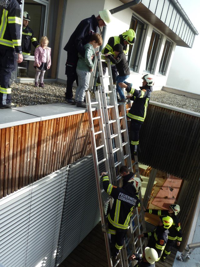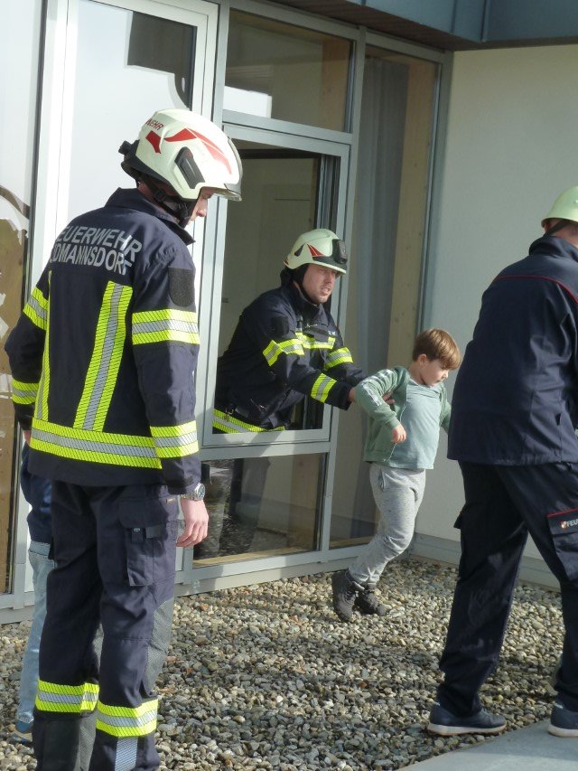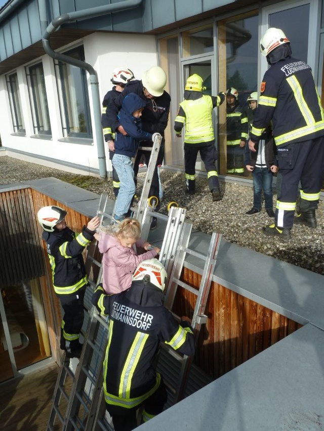 Am Freitag den 17. Oktober wurde an unserer Schule eine Räumungsübung durchgeführt. Dabei wurden Informationen über das Verhalten im Katastrophenfall, Bedeutung der Alarmzeichen, sowie der Verlauf der Fluchtwege trainiert. Um etwaige Stresssituationen für Kinder zu vermeiden, wurden den SchülerInnen bereits vorher die Alarmzeichen und deren Bedeutung erklärt und das richtige Verhalten besprochen. Als Übungszweck wurde diesmal eine starke Rauchentwicklung im Schulgebäude simuliert und die Evakuierung über das Schuldach geübt. Nach einer kurzen Einführung wurden die Kinder und Lehrer durch die Feuerwehr bestens versorgt und sicher geborgen. Die Räumungsübung war sehr lehrreich und sehr gut vorbereitet. Ein herzlicher Dank an die Freiwilligen Feuerwehren Ludmannsdorf und Wellersdorf!