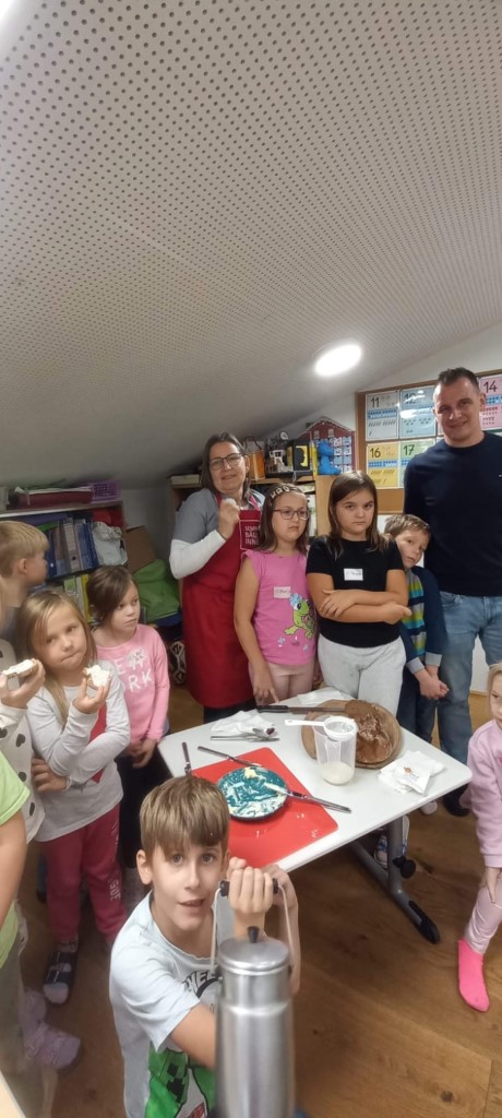 Na teh projektnih dopoldnevih na temo „Od zrna do kruha“ za tretji in četrti razred ter „Pot mleka“ za prvi in drugi razred so učencem na treh postajah posredovali teoretične in praktične osnove zdrave prehrane. Otrokom so predstavili „domače kmetijstvo“.
