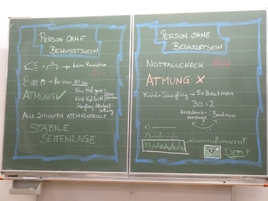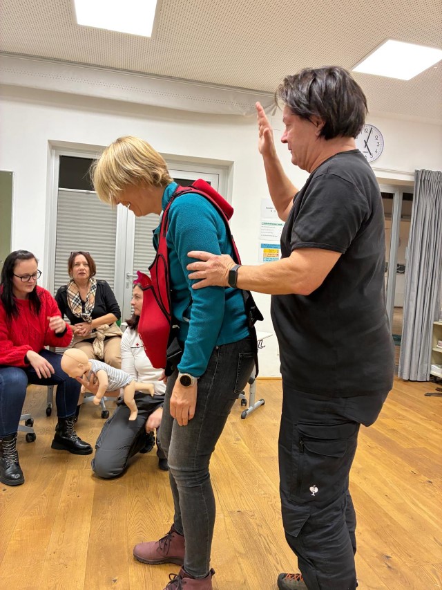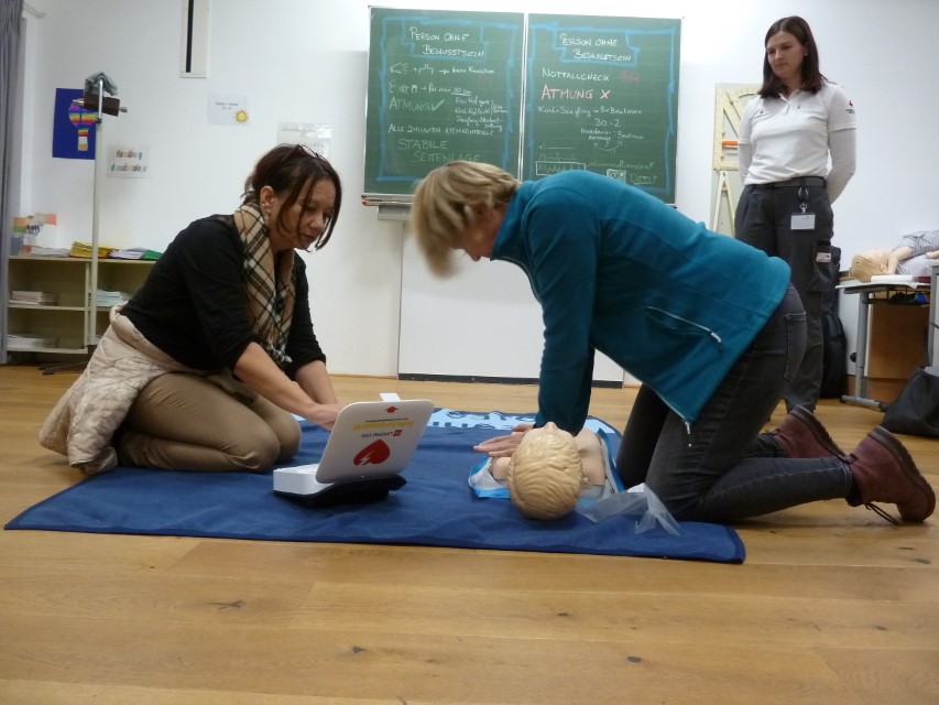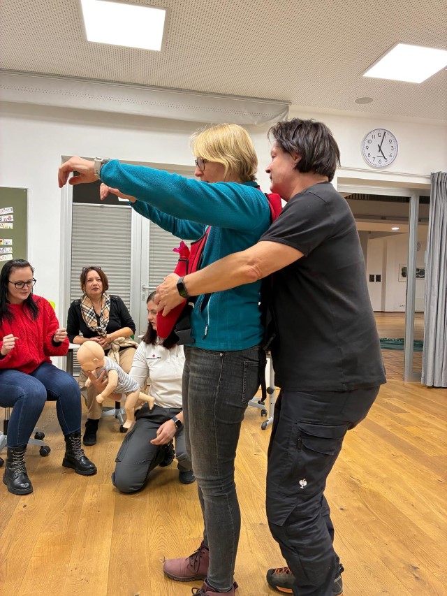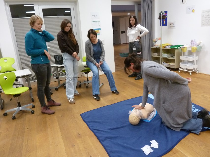Am 20.11. nahmen einige Lehrkräfte unserer Schule an einem halbtägigen Erste-Hilfe-Kurs teil. Unter Anleitung der erfahrenen Notfallsanitäterin Lisa Doujak wurden lebensrettende Sofortmaßnahmen wie stabile Seitenlage, Wiederbelebung und der Umgang mit dem Defibrillator praktisch geübt. Besonderes Augenmerk lag auf Notfällen im Schulalltag – von kleinen Verletzungen auf dem Pausenhof bis hin zu schweren allergischen Reaktionen. Die Teilnehmenden zeigten großes Engagement und tauschten sich über bisherige Erfahrungen aus. Alle betonten, wie wichtig regelmäßige Auffrischungen seien, um im Ernstfall schnell und sicher handeln zu können.