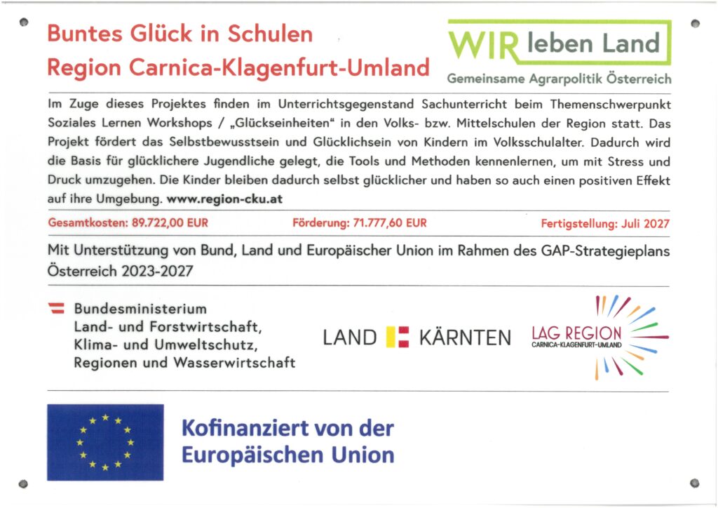 Das sagt die Glückstrainerin Karin Schellander-Ulbing zu ihrem Projekt „GLÜCKskinder – gemeinsam stark“, welches wir heuer bereits das zweite Schuljahr an unserer Schule durchführen dürfen.