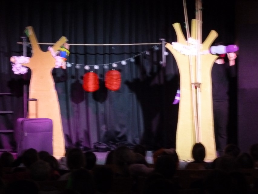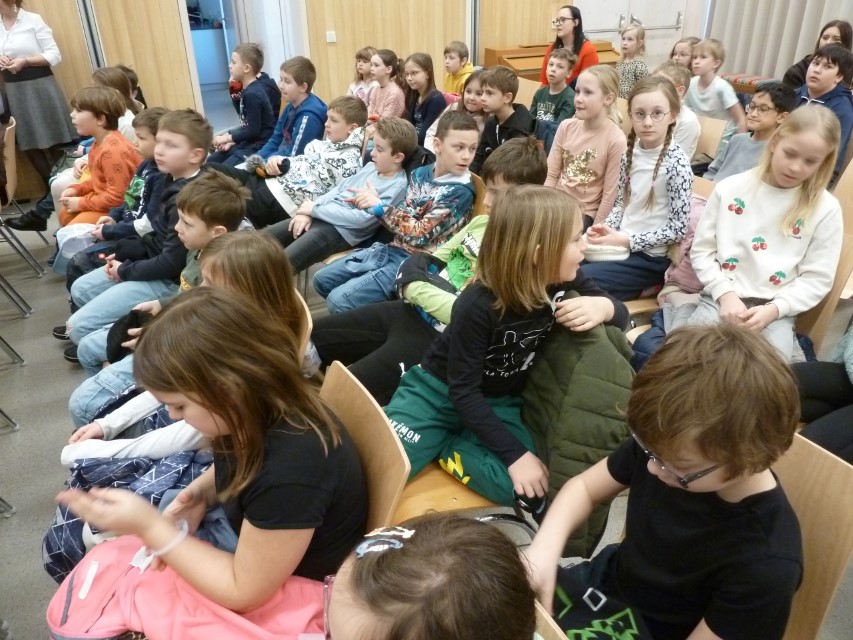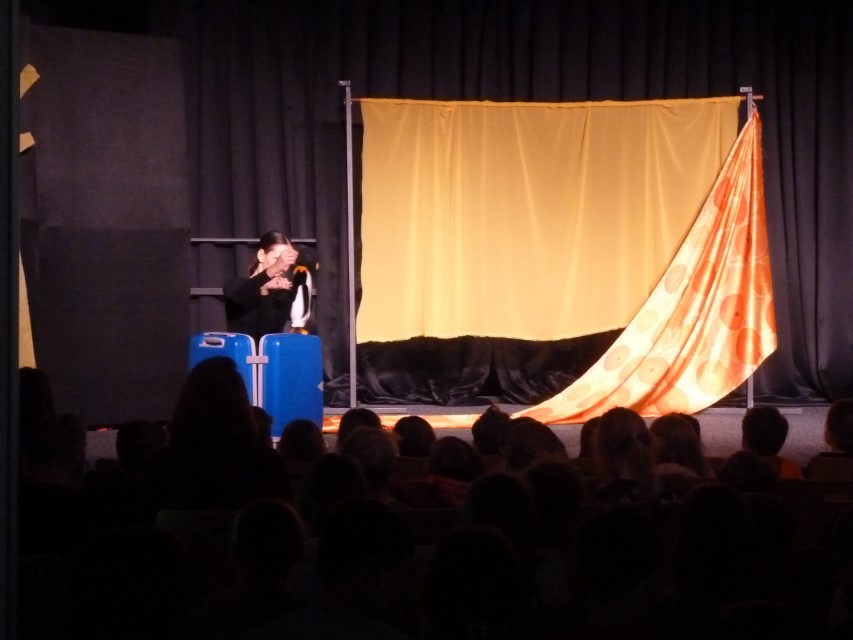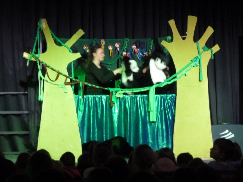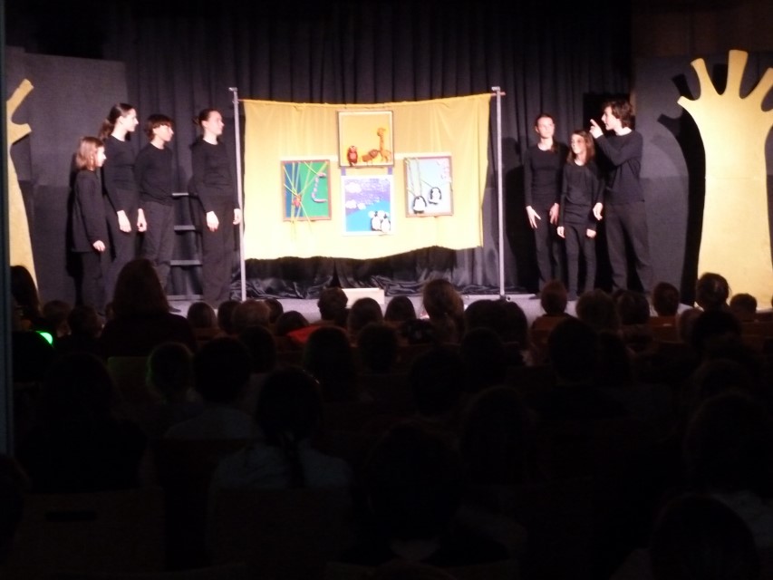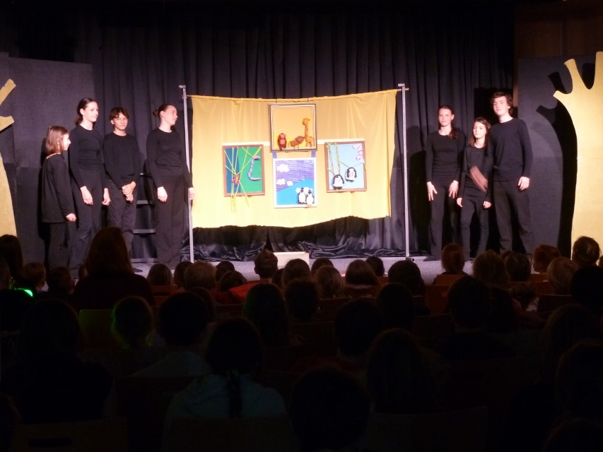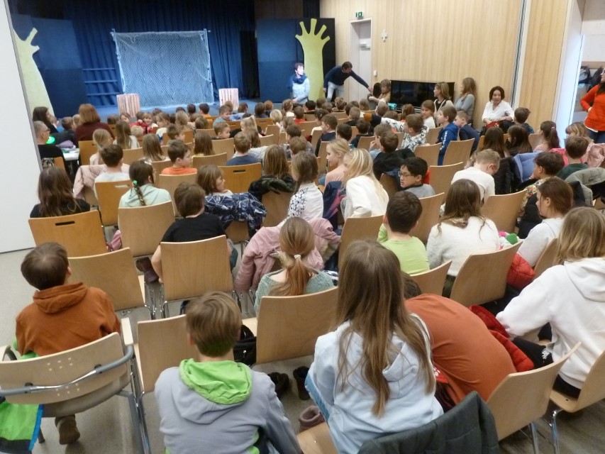 Am Freitag, den 27.2. gastierte bei uns in Ludmannsdorf im Rahmen des Theater- und Figurenfestivals TRIBUNA die Puppentheatergruppe „Mladi Celovčani“ aus Klagenfurt. Die begeisterten Schauspieler und Schauspielerinnen spielten unseren Kindern die Puppenaufführung „Zopet doma“ (Wieder zu Hause) vor.
