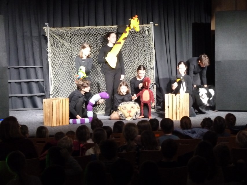 Predstava je pripovedovala zgodbo o nesrečnih živalih iz živalskega vrta, ki so bile zaprte v kletkah. Skupaj so se odločili za beg, vendar so med begom izgubili pot nazaj v svoj dom. Člani različnih organizacij so jih rešili iz te zagate in jim pomagali, da so se vrnili v svoje domače okolje. Mlada skupina, ki deluje v okviru Slovenskega kulturnega društva Celovec, je izvrstno odigrala in dijakinje in dijaki so bili navdušeni nad živalmi, ter uživali v gledališki predstavi.