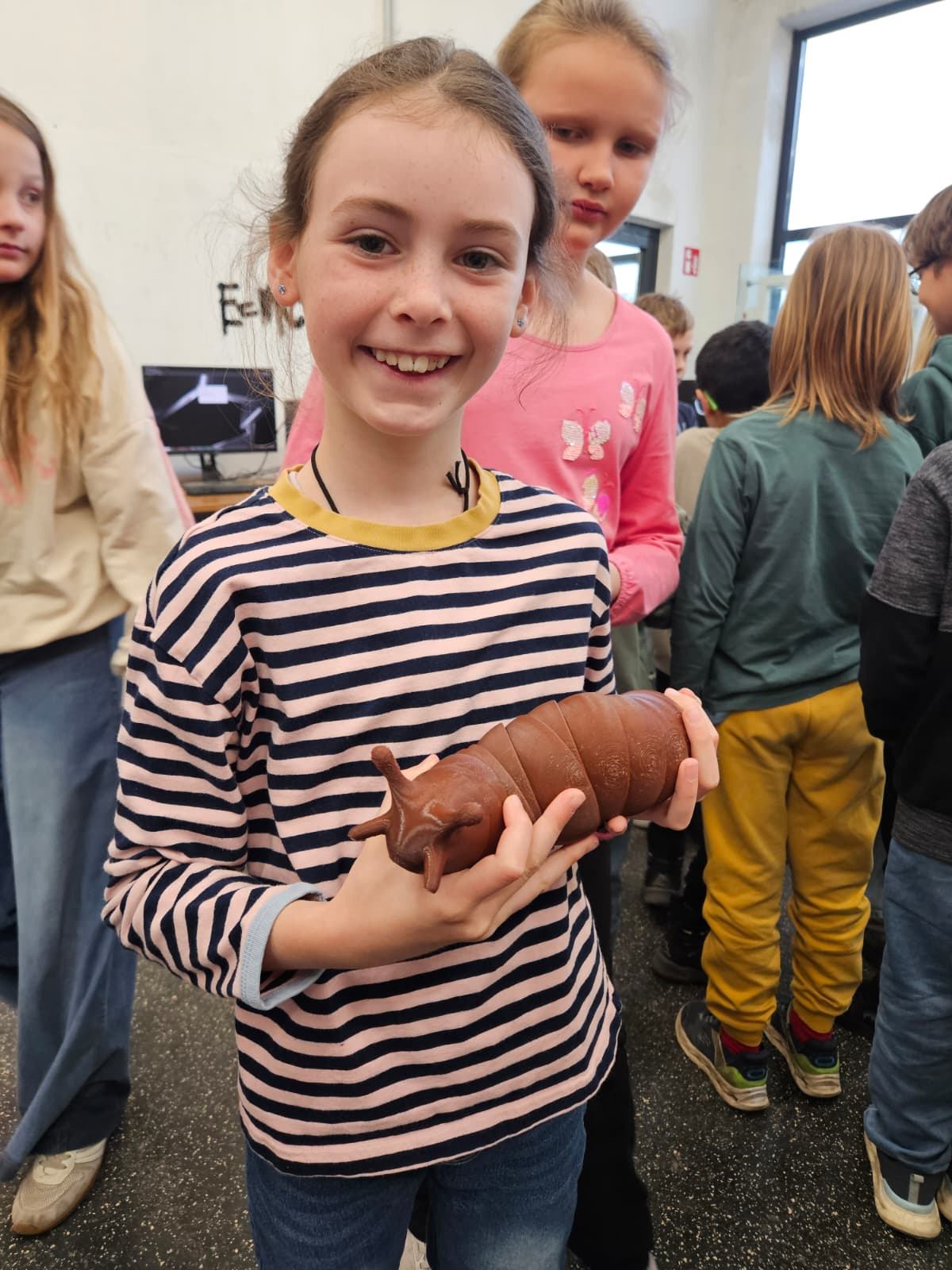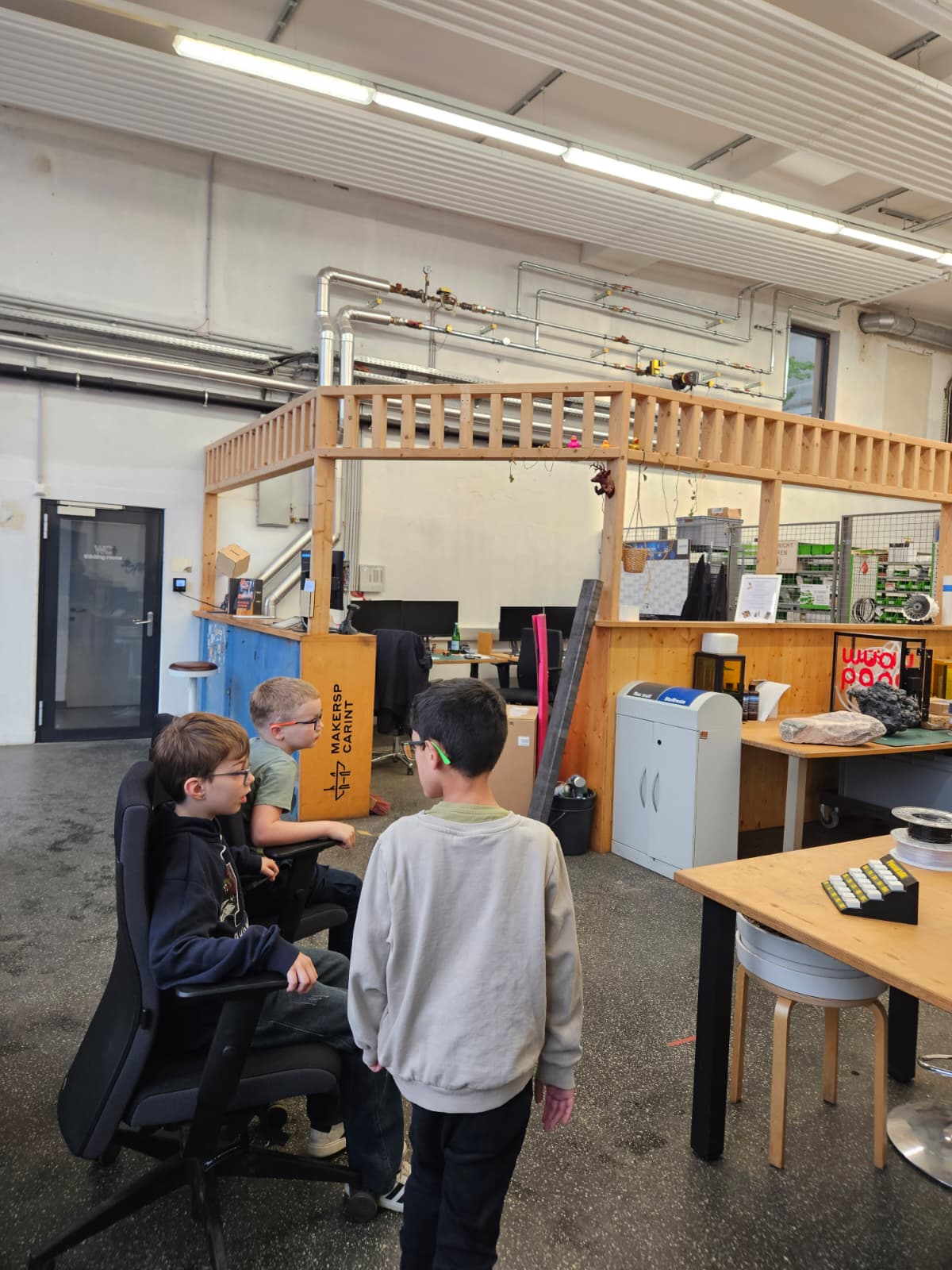 14. aprila se je 3. razred odpravil v Celovec, kjer je obiskal delavnico „Makerspace“. Tam so se učenke in učenci seznanili s konceptom delavnice: v njej lahko zasebniki ali podjetja uresničijo svoje inovativne zamisli. Uporabljajo lahko vso sodobno opremo, kot so 3D tiskalniki, laserski rezalniki, šivalni stroji idr. Otroci so našli idealen prostor, kjer lahko ustvarjajo, pa naj gre za obdelavo lesa, plastike ali kovin. Tu lahko vsakdo najde nekaj zase! „Ustvarjalci“ iz 3. razreda so v kalupe stisnili zdrobljeno staro plastiko, da so ustvarili individualne vrtalke. Z laserskim rezalnikom so iz plastike izrezali obliko za „fidget spinner“ in ga s pomočjo krogličnih ležajev naredili vrtljivega. Veliko so videli, slišali, poskusili in se naučili. Hvala gospodu Hilpertu od KEM-Carnica za finančno podporo!