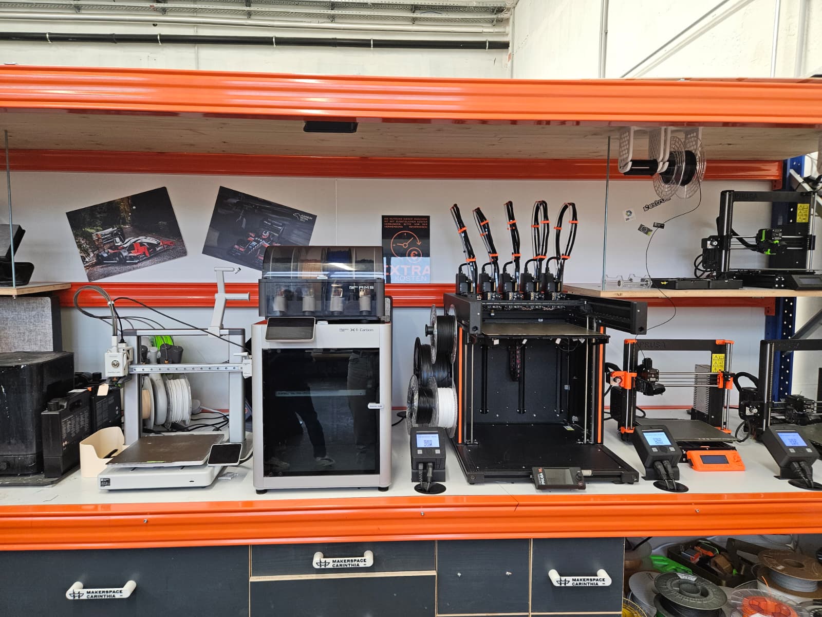 Der MAKERSPACE Carinthia ist ein gelungener Mix aus Werkstatt und Workspace auf 1500 Quadratmeter. In der Werkstatt findet man mehr als 50 Maschinen zur Bearbeitung von Stoff, Holz, Metall und Kunststoff – darunter Hochleistungsgeräte wie eine Wasserstrahlschneideanlage oder einen industriellen 3D-Drucker. Außerdem gibt es umfassend ausgestattete Elektronikarbeitsplätze. Zusätzlich dazu gibt es noch den Workspace mit Co-Working-Arbeitsplätzen, Küche, Besprechungsraum und eigenen Büro-Containern.