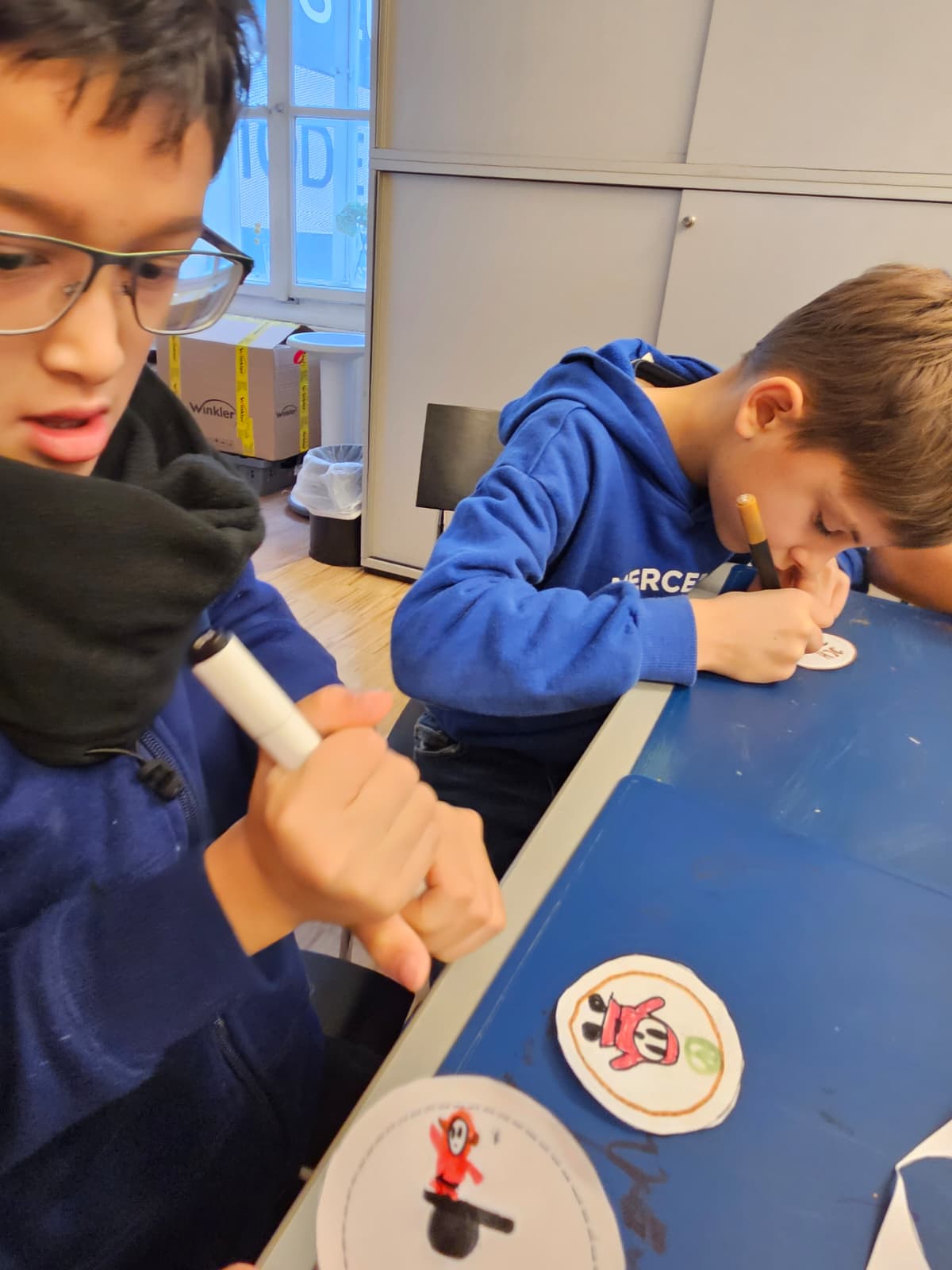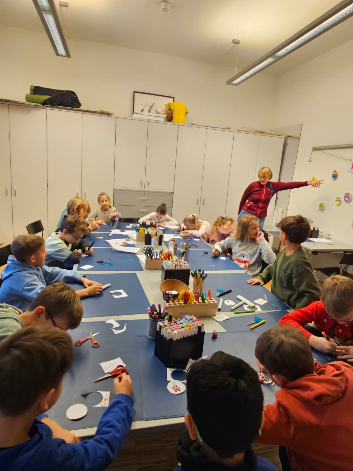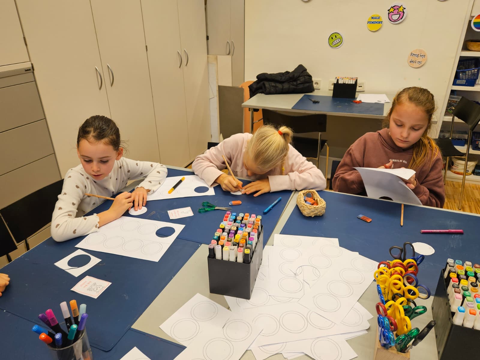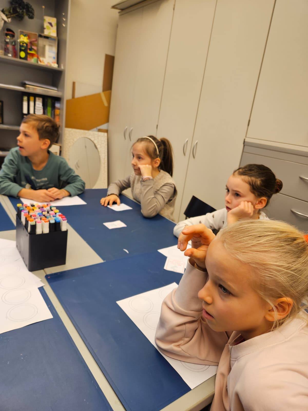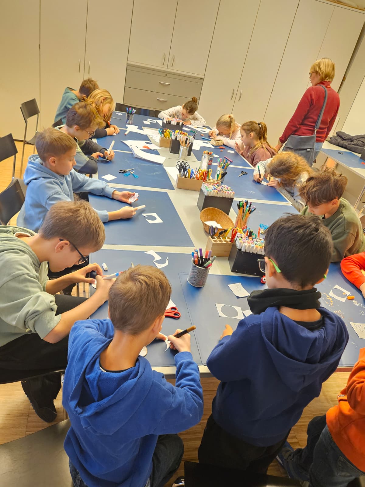 Im Anschluss konnten die Kinder selbst kreativ werden und eigene Buttons gestalten, die sie als Erinnerung an diesen besonderen Tag mit nach Hause nehmen durften. Ein gelungener Tag voller Kunst, Kreativität und neuer Eindrücke!