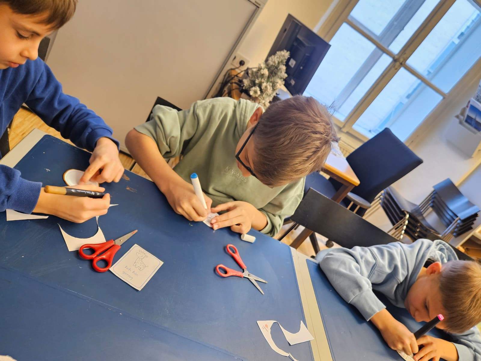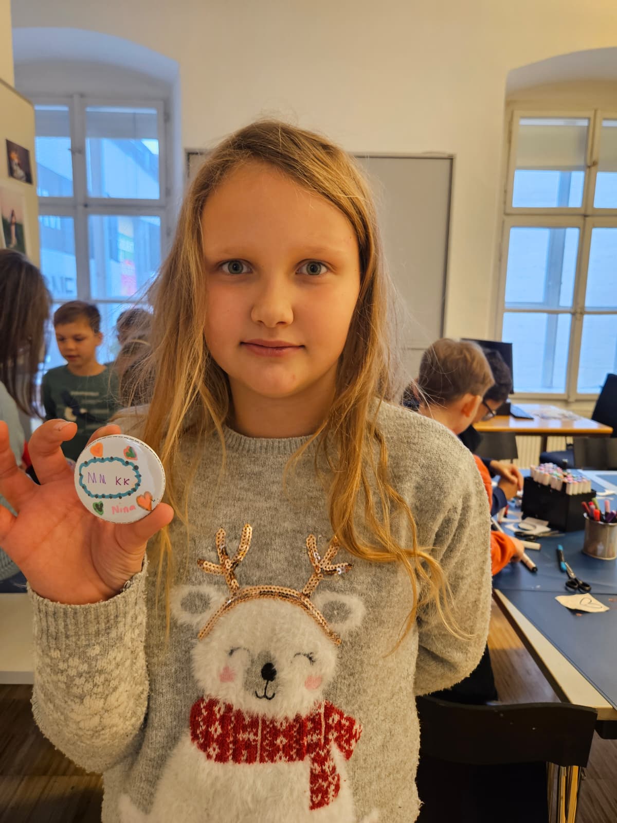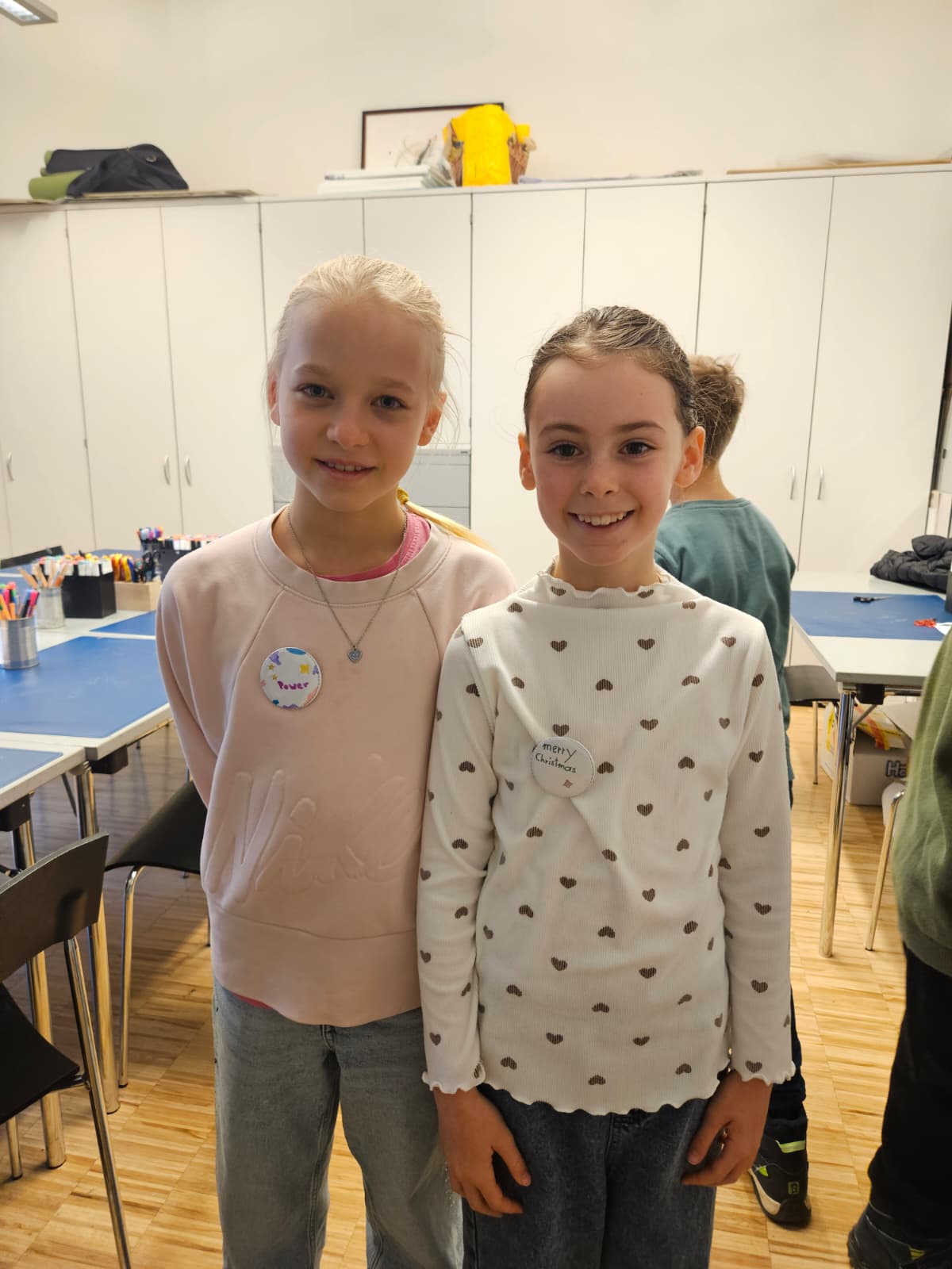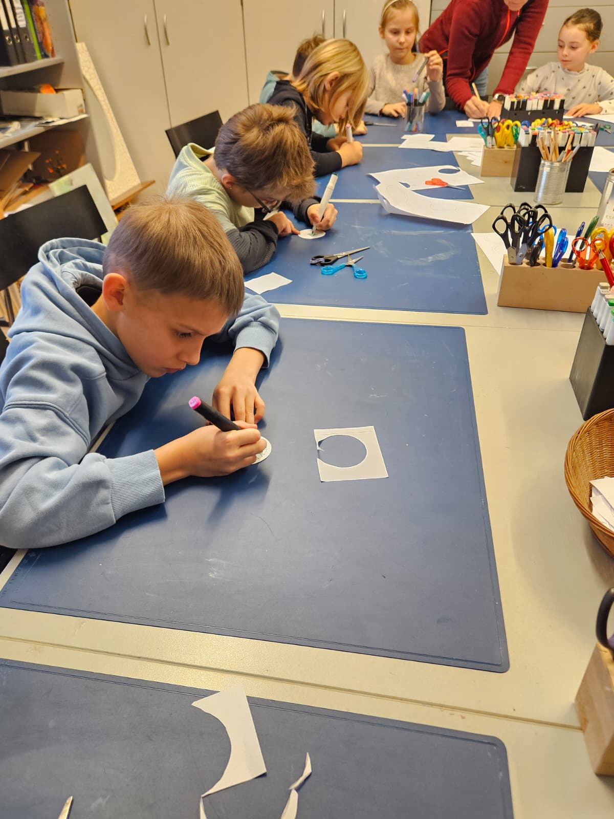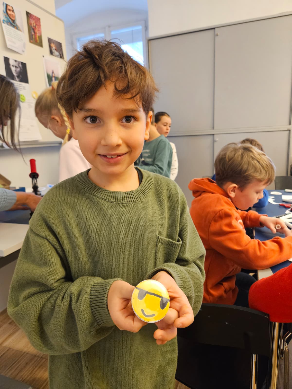 Im Anschluss konnten die Kinder selbst kreativ werden und eigene Buttons gestalten, die sie als Erinnerung an diesen besonderen Tag mit nach Hause nehmen durften. Ein gelungener Tag voller Kunst, Kreativität und neuer Eindrücke!