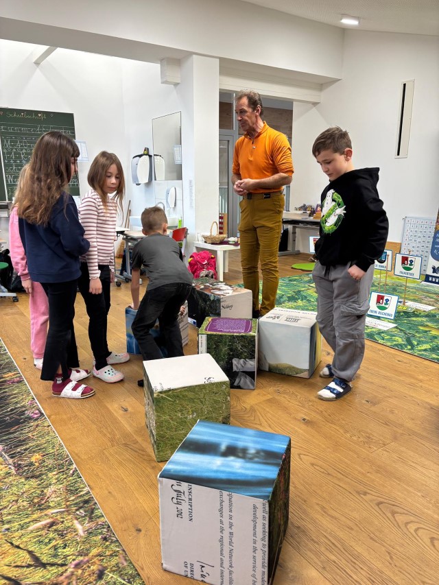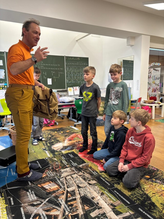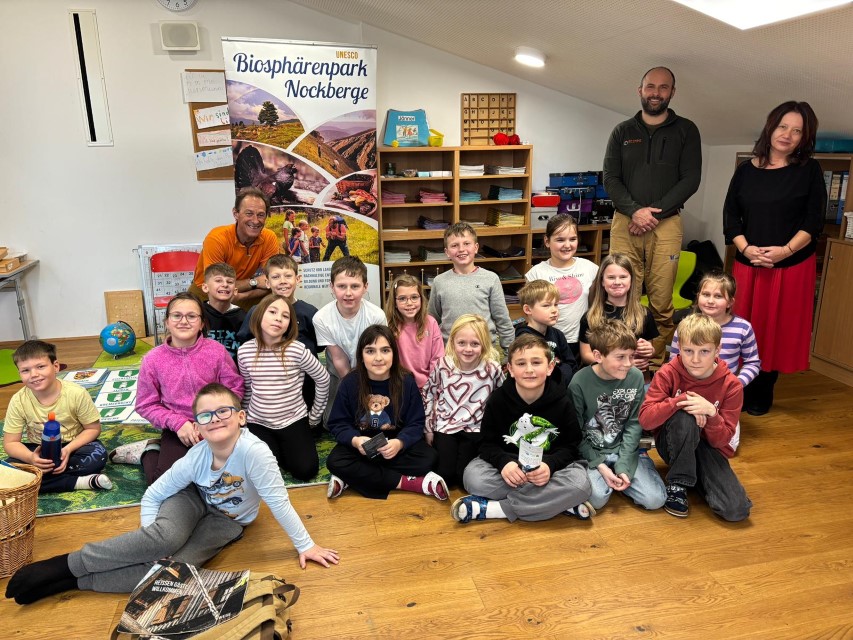 Ta in še druga vprašanja so bila 16. februarja razjasnjena z mobilno biosfersko šolo „Schlaufux on Tour“ z otroki iz naših 2. razredov. Rangerja Markus in Johannes sta prišla v šolo in skupaj z učenci na igriv način pripravila zanimive in poučne informacije o biosfernem parku Nockberge. Z nazornimi učnimi pripomočki in otrokom prilagojenimi pojasnili je bilo dopoldne za vse otroke pravo doživetje. V sredo, četrtek in petek bo mobilna šola tudi za ostale razrede.